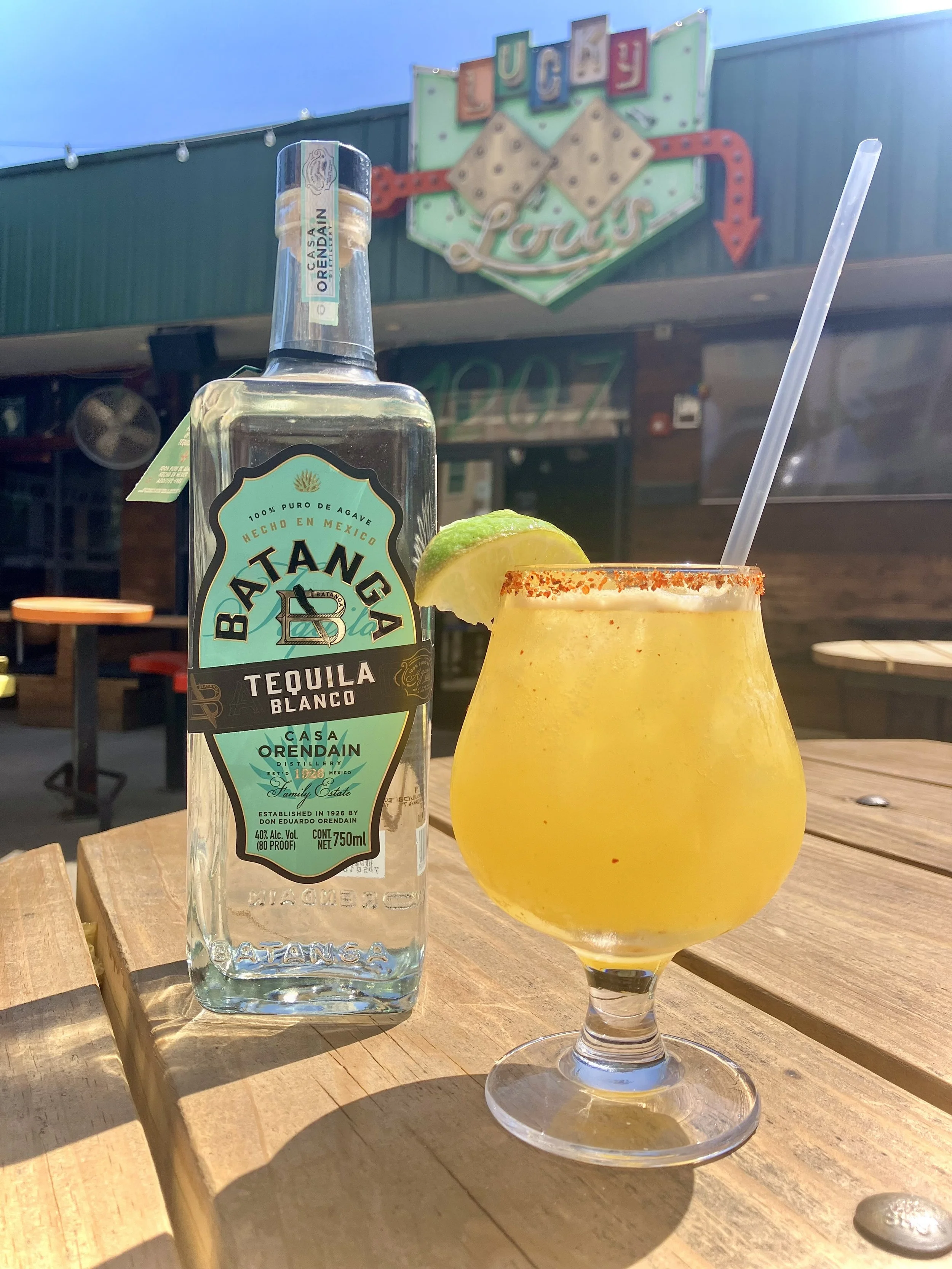 Batanga Tequila, Triple Sec, Mango Puree, Habanero Lime Simple, Sweet & Sour, Splash of Orange Juice, Pinch of Cayenne